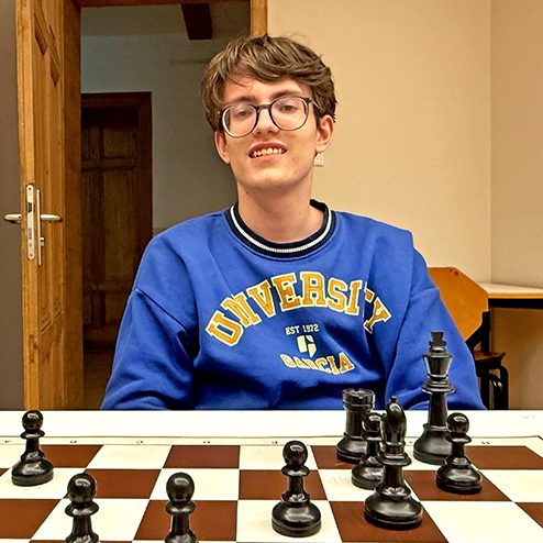 In dieser hatte der Gegner von Serhii Savian (Foto) am Spitzenbrett in einem reinen Damenendspiel mit einem Dauerschach gedroht, dem nur schwerlich zu entkommen war. Serhii nunmehr blies seinerseits zum Angriff auf den gegnerischen Monarchen, den er mit einem beeindruckenden Solomatt seiner Dame einfangen konnte.