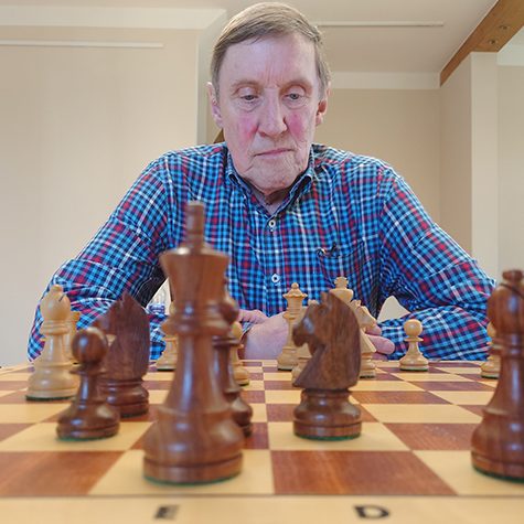 Im einzelnen: Dietrich Füllborn (Foto) hatte schnell gewonnen. Er stand ein wenig besser, als sein Gegenüber aufgab. Peter Weng hatte druckvoll aufgespielt und seinen Gegner vor unlösbare Aufgaben gestellt, der dann alsbald die Segel strich. Der Gegner von Ralf Westhues hatte in einem frühen Partiestadium ein Opfer versucht, das allerdings sehr gewagt war und zwei Bauern für eine Figur einbrachte. Nachdem sich die Situation entschärft hatte, holte sich Ralf die gegebenen Bauern nach und nach zurück und gewann die Partie. Moritz Wagner hatte sich beim Angriff auf seine Rochadestellung tapfer verteidigt. Als die Bemühungen des Hiltrupers ins Leere verlaufen waren, drehte Moritz den Spieß um und gewann das Ding. Wenig los war an den Brettern von Bernfried Specht und Serhii Savian, beide Begegnungen endeten mit einem Remis. Eindeutig zweite Sieger an ihren Brettern waren Philipp Witt und Roman Hontariev. Diese beiden Begegnungen liefen zeitlich am längsten und erreichten das Endspiel. Doch die Aussichten waren für beide hoffnungslos, sodass sie ihre Partien aufgaben.