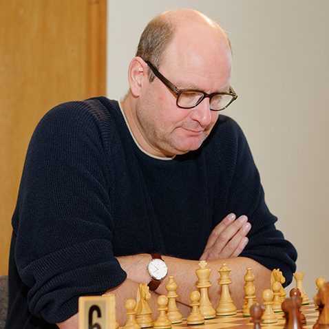 nach einem Versehen auf der Außenlinie frühzeitig die Waffen strecken müssen, wodurch Sendenhorst in Rückstand geraten war. Danach folgten sechs Remispartien, die allesamt das Blatt nicht wendeten. Zum Schluss sprach sogar sehr viel dafür, dass Telgte das Ding gewinnen würde. Stefan Janz, Philipp Witt und Serhii Savian spielten die letzten drei verbliebenen Partien. Stefan Janz (Foto) hatte einen weit vorgerückten Freibauern geschaffen, doch konnte er diesen nicht zur Dame verwandeln. Letztlich begaben sich beide Spleler in eine Zugwiederholung. wodurch die Partie remis wurde. Ein schwieriges Endspiel hatte Philipp Witt erreicht. Mit seinem Läufer konnte er nur die weißen Felder des Bretts im Auge behalten; sein Gegner hingegen verfügte über einen Springer, der auf dunklen wie hellen Feldern agieren konnte. Aber nach der Zeitkontrolle waren beide Spieler groggy, und Philipp bot seinem Gegenüber eine Punkteteilung an, die dieser akzeptierte. Die Kohlen aus dem Feuer holte Serhii Savian am Spitzenbrett. Sein Gegner hatte ihm hartnäckig Paroli geboten, doch Im Endsplel mit jewells zwel Bauern plus Turm verließen ihn die Kräfte. Eine schöne abschließende Wendung entschied das Spiel zugunsten des Sendenhorsters.